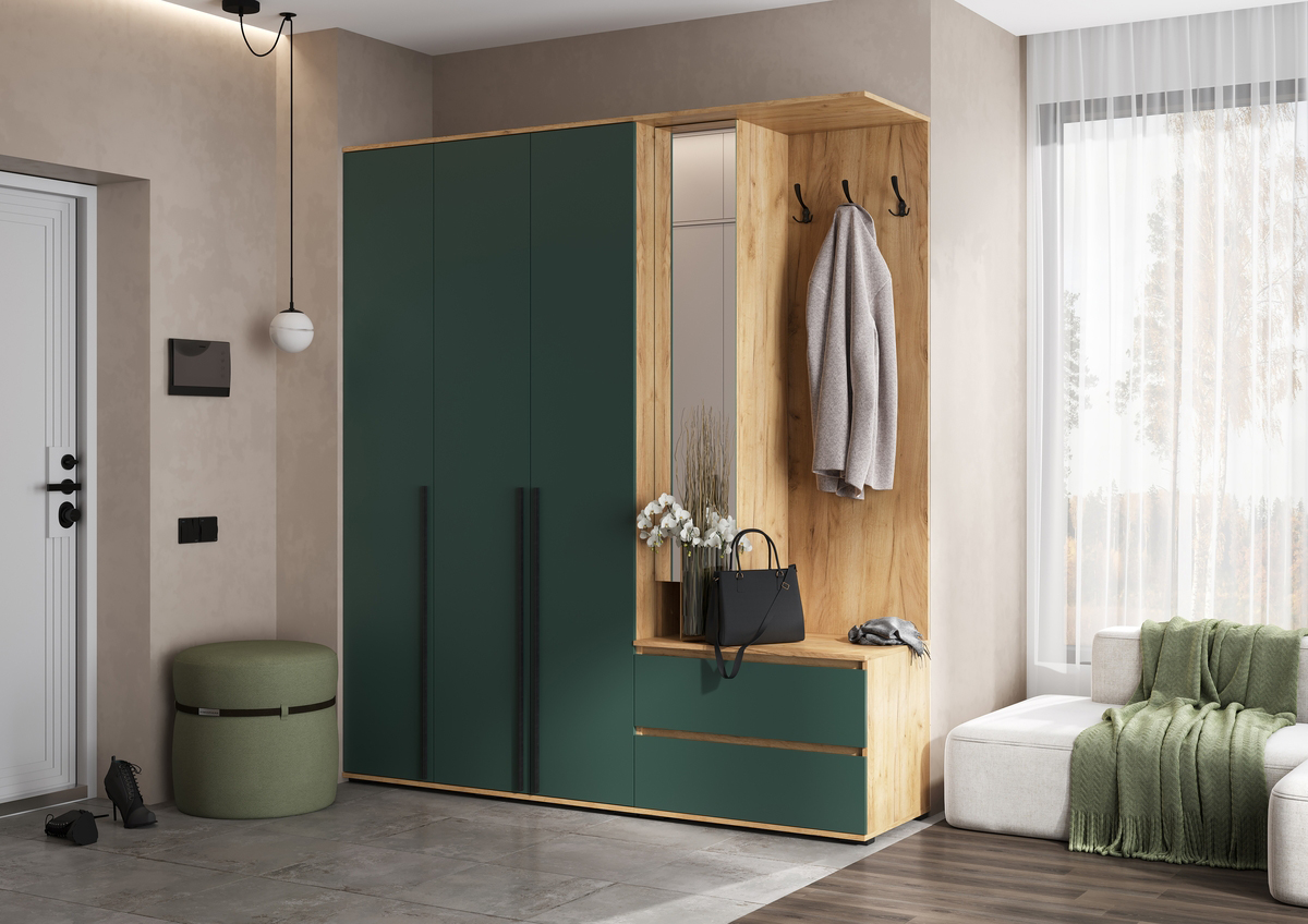 Прихожая Норд+Шкаф 1200, крафт/изумруд (Миф)